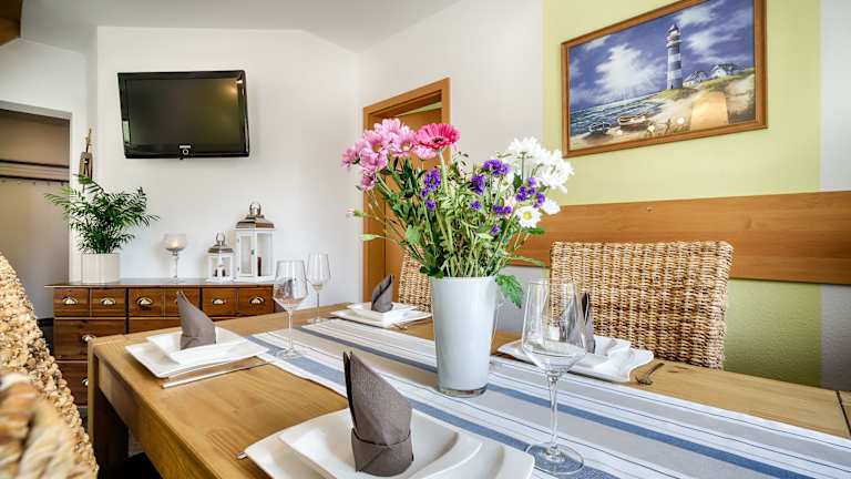 Die Zimmer im Hotel Haus Buhneneck sind gemütlich eingerichtet und bieten Ihnen alles, was Sie für einen angenehmen Aufenthalt benötigen. Jedes Zimmer verfügt über eine praktische Küchenzeile, in der Sie kleine Mahlzeiten zubereiten können. Der Sitzbereich bietet Ihnen die Möglichkeit, sich zu entspannen und einen Film auf dem Flachbild-TV zu genießen. Die Zimmer befinden sich alle auf der 1. Etage und verfügen über ein eigenes Bad. Handtücher und Bettwäsche können gegen Aufpreis zur Verfügung gestellt werden, um Ihren Aufenthalt so komfortabel wie möglich zu gestalten.