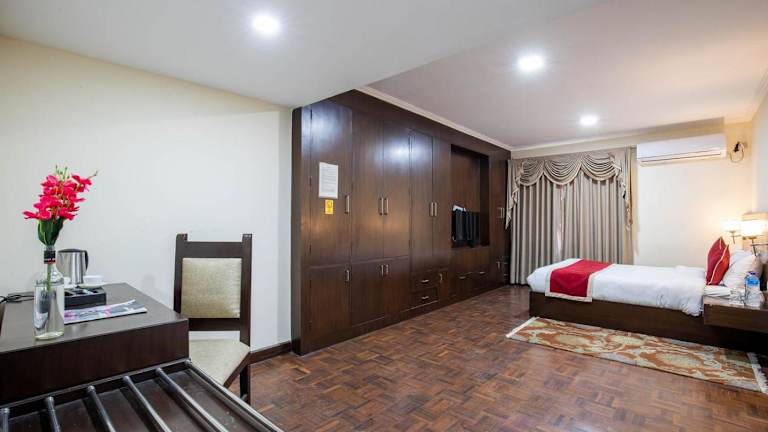 Die Gästezimmer im Buki Boutique Hotel Lazimpat sind mit einem Flachbild-TV mit Kabelkanälen, einem Wasserkocher, einem Bidet, kostenlosen Pflegeprodukten und einem Schreibtisch ausgestattet. Bettwäsche, Handtücher und Wäsche werden nach den Richtlinien der örtlichen Behörden gewaschen. Alle Zimmer sind mit eigenem Badezimmer und Klimaanlage ausgestattet.
