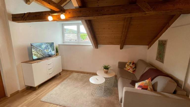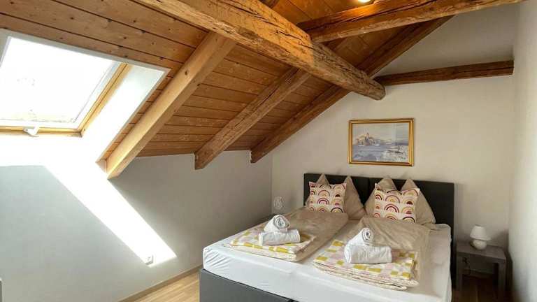 Die Ferienwohnung ist ausgestattet mit 2 Schlafzimmern, einer Küchenzeile, einem Flachbild-TV und einem Sitzbereich. Ein Badezimmer mit Badewanne ist ebenfalls vorhanden. Bettwäsche und Handtücher werden zur Verfügung gestellt.
