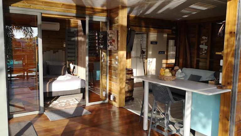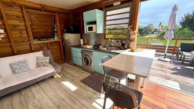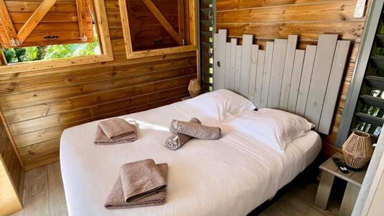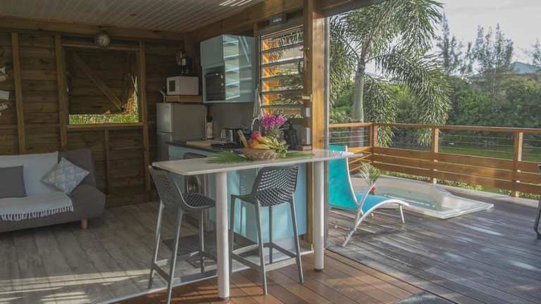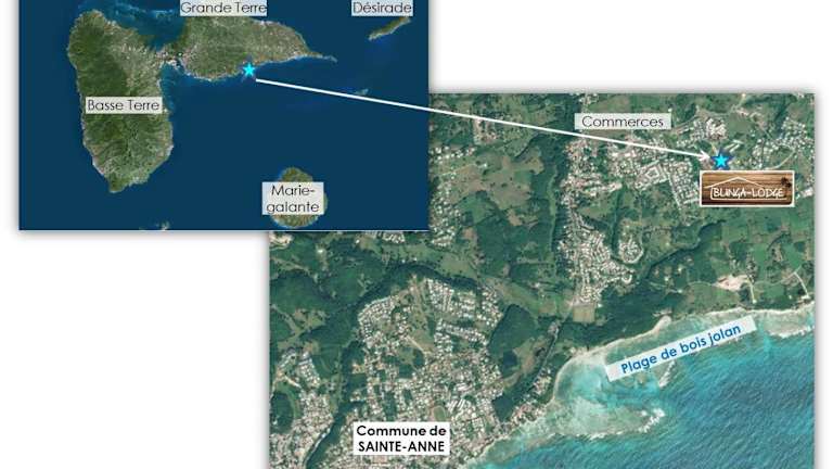 Die BUNGA-LODGE befindet sich in Douville, nur 1,7 km vom Strand Plage de Bois Jolan und 2,6 km vom Strand Gros Sable entfernt. Die Lage zeichnet sich durch eine ruhige Umgebung aus, ideal für erholsame Ferien.