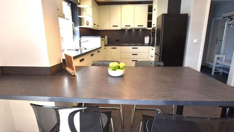 Das Ferienhaus ist mit zwei Schlafzimmern ausgestattet. Es verfügt über eine Küche, die mit einem Kühlschrank und einem Geschirrspüler eingerichtet ist. Zur Ausstattung gehört ein Badezimmer mit einer Badewanne, einem Haartrockner und einer Waschmaschine. Handtücher und Bettwäsche können gegen Aufpreis bereitgestellt werden.