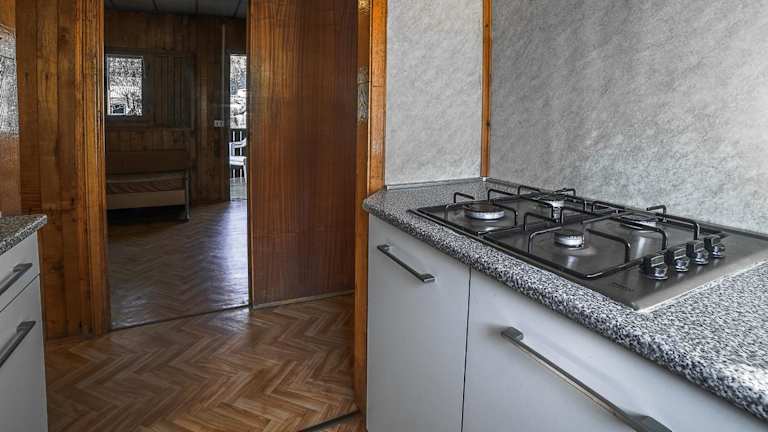 Die Ferienwohnung verfügt über zwei Schlafzimmer, ein Wohnzimmer und eine gut ausgestattete Küchenzeile mit Kühlschrank und Herdplatte. Zudem gibt es ein Badezimmer mit Dusche sowie einen Balkon mit Bergblick.