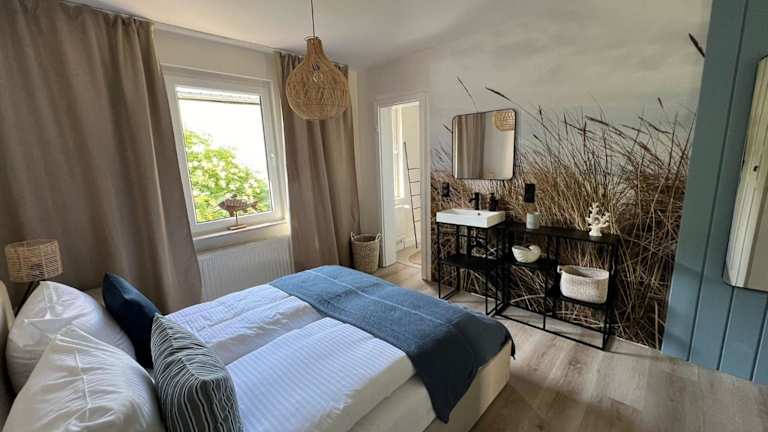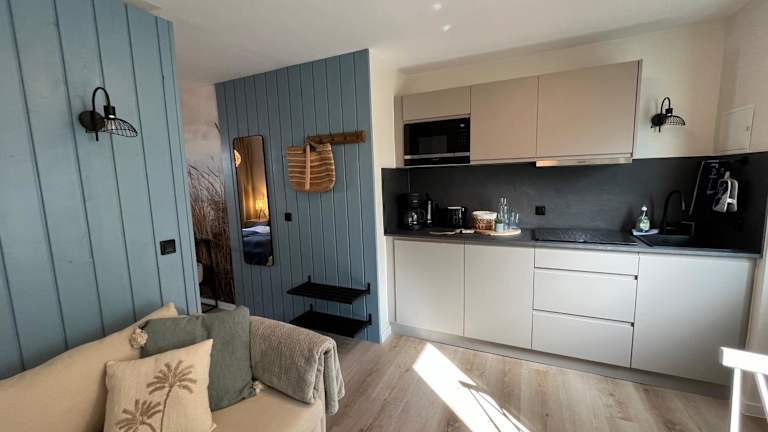Die Unterkunft bietet ein gemütliches Schlafzimmer, ein Badezimmer sowie eine voll ausgestattete Küchenzeile. Bettwäsche und Handtücher sind inklusive. Die gesamte Unterkunft ist als Nichtraucherzimmer konzipiert und bietet zudem Gartenmöbel auf der Terrasse.
