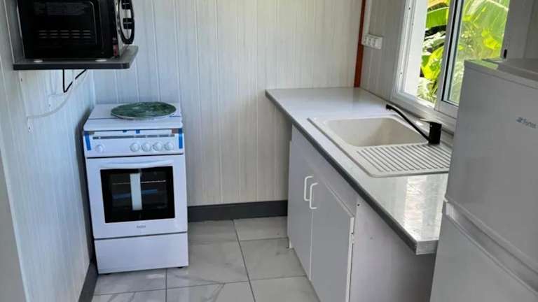 Der Bungalow verfügt über 20 m² und umfasst ein Schlafzimmer, ein Wohnzimmer sowie eine gut ausgestattete Küche mit Kühlschrank und Ofen. Zudem ist ein Balkon vorhanden und die Ausstattung schliesst einen TV ein.