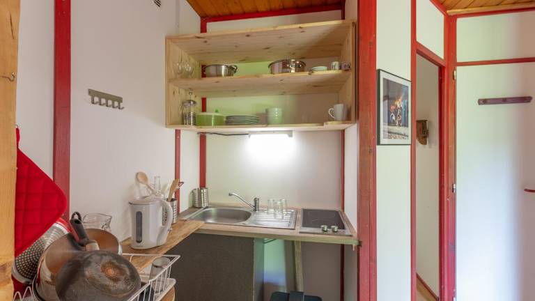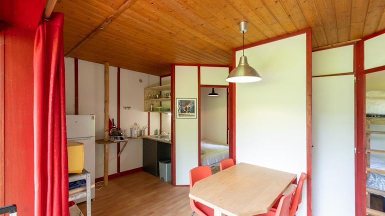 Das Ferienhaus verteilt sich auf zwei Schlafzimmer und bietet eine voll ausgestattete Küche mit Kühlschrank und Ofen. Zusätzlich verfügt das Haus über ein Badezimmer mit Dusche. Eine Terrasse und eine Veranda/Patio sind ebenfalls vorhanden.