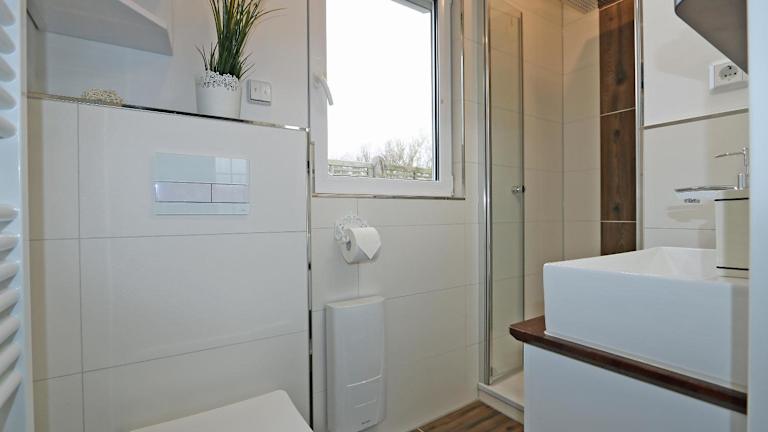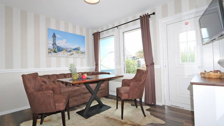 Die Unterkunft Bungalow-Park Ostseenordstern verfügt über eine Terrasse mit Gartenblick. Die Gästezimmer sind mit einem Sitzbereich, einem Flachbild-TV und einer voll ausgestatteten Küchenzeile ausgestattet, die einen Kühlschrank, Geschirrspüler, Ofen, Herdplatte, Toaster, Kaffeemaschine und Wasserkocher beinhaltet. Jedes Zimmer bietet ein eigenes Badezimmer mit Dusche und Haartrockner.
