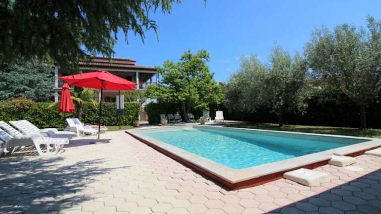 Das Bungalow Porec (4400-8) bietet Übernachtungsmöglichkeiten in einem komfortablen Ferienhaus mit einem Aussenpool und kostenlosem Wifi. Die Anlage ist umgeben von einer ansprechenden Terrasse und bietet kostenlose Parkiermöglichkeiten für Gäste.