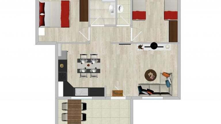Das Ferienhaus besteht aus 2 Schlafzimmern, einem Wohnzimmer sowie einer voll ausgestatteten Küche mit Kühlschrank und Kaffeemaschine. Es gibt 2 Badezimmer mit Dusche. Handtücher und Bettwäsche werden zur Verfügung gestellt.