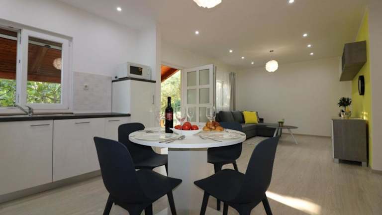 Die Unterkunft Bungalow Porec (4400-8) liegt ungefähr 27 km vom Aquapark Istralandia entfernt und 2,9 km von Strand Borik. Die Umgebung bietet eine ruhige Atmosphäre und ist ideal für Feriengäste, die eine entspannte Zeit verbringen möchten.
