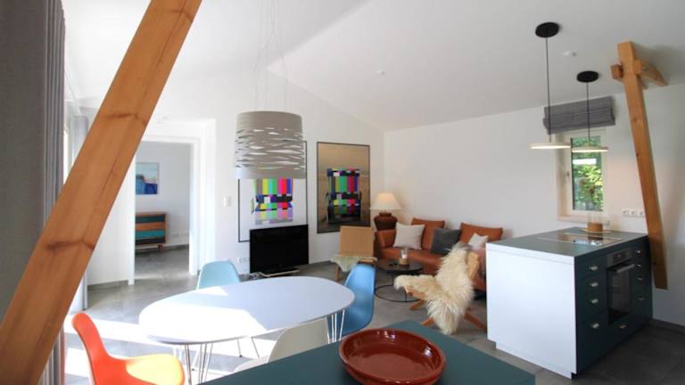 Die Bungalow Schifferberg Lodge befindet sich in Ahrenshoop, nur 500 Meter vom Strand Ahrenshoop entfernt. In der Umgebung finden sich kulturelle Sehenswürdigkeiten wie die Sankt-Marien-Kirche Rostock und das Kulturhistorische Museum, beide in ca. 43 km Entfernung. Der nächstgelegene Flughafen ist der Flughafen Rostock-Laage, etwa 63 km von der Unterkunft entfernt.