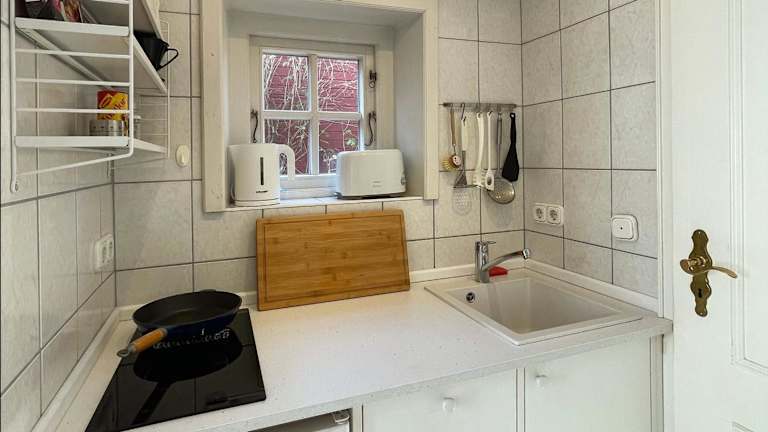 Das Ferienhaus ist mit einem Schlafzimmer, einem TV mit Satellitenkanälen sowie einer voll ausgestatteten Küche eingerichtet. Die Küche verfügt über einen Kühlschrank, eine Herdplatte, eine Waschmaschine und einen Toaster, was für Bequemlichkeit während des Aufenthalts sorgt.