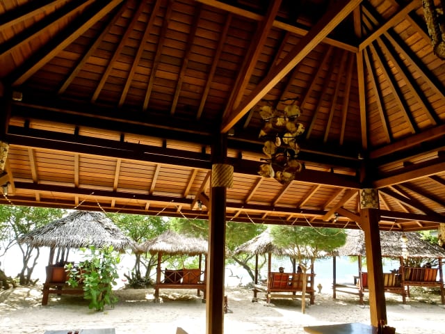 Die Biru Meno Beach Bungalows bieten einmalige Bungalows am Strand mit Strohdächern und Holzmöbeln. Die Unterkunft verfügt über einen eigenen Zugang zum Strand und eine heimelige Atmosphäre, ideal zum Entspannen und Geniessen des Meerblicks.