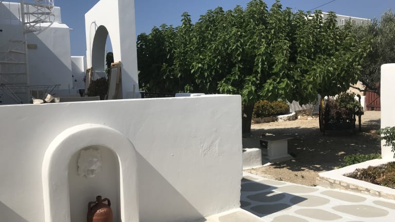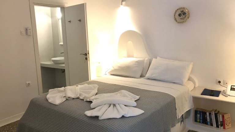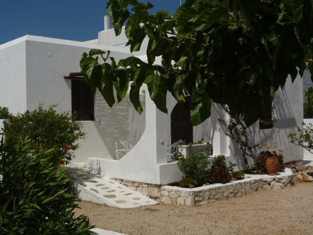 Studios und Apartments Alle Wohneinheiten sind individuell gestaltet und mit Deckenventilator, Telefon, Kochnische und W-LAN Internetzugang ausgestattet. Bei den Appartements ist jeweils eines der Zimmer Durchgangszimmer zur Dusche/WC bzw. zum Ausgang. Größtenteils sind die Betten, nach der Kykladischen Architektur, auf gemaurtem Sockeln. Alle Wohneinheiten haben eigene Balkons oder Terrassen und einige haben zusätzlich eine Dachterrasse, mit Gartenmöbeln und/ oder eingebauten Sofas, Sonnenschirm oder Pergolen.