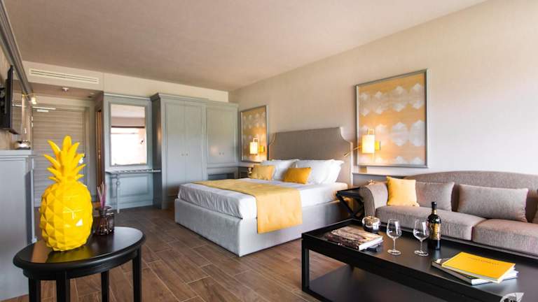 Die klimatisierten Zimmer der Unterkunft sind mit einem Kleiderschrank, Wasserkocher, Minibar, Safe, Flachbild-TV und einem eigenen Badezimmer mit Bidet ausgestattet.
