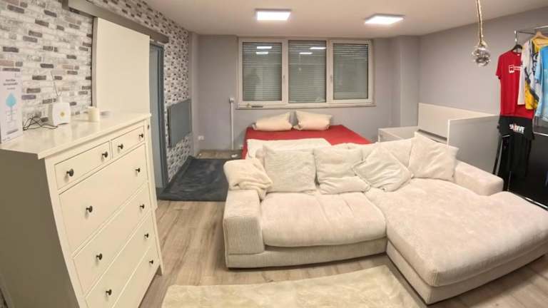 Die Ferienwohnung verfügt über ein Schlafzimmer sowie eine Küche, die mit einem Kühlschrank und einem Geschirrspüler ausgestattet ist. Es gibt ein Badezimmer mit Dusche und kostenlosen Pflegeprodukten. Handtücher und Bettwäsche werden zur Verfügung gestellt.