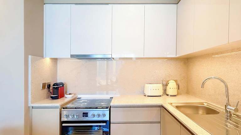 Die Unterkunft verfügt über Zimmer mit einem Sitzbereich, einem Flachbild-TV, einer voll ausgestatteten Küche mit Kühlschrank und Geschirrspüler sowie einem eigenen Badezimmer mit Dusche, Badewanne und kostenlosen Pflegeprodukten. Darüber hinaus bieten die Zimmer eine Veranda oder einen Patio mit Stadtblick.