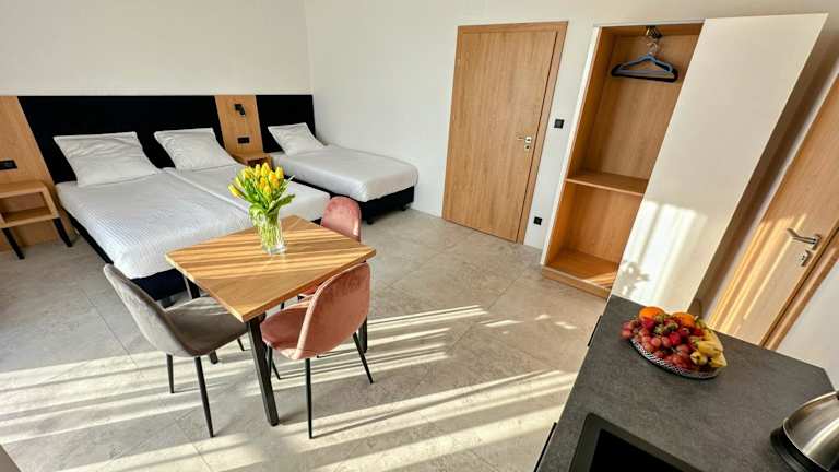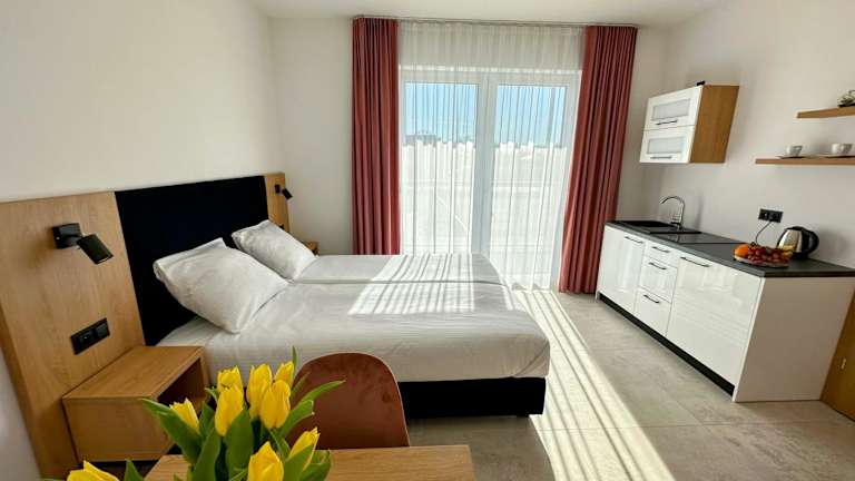 Die Zimmer sind mit einem Kleiderschrank, einem Flachbild-TV, einem eigenen Badezimmer sowie Bettwäsche und Handtüchern ausgestattet. Jedes Zimmer hat einen Balkon mit Gartenblick und einen Kühlschrank.
