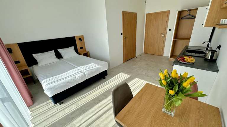 Die Unterkunft Bursztynowa Rosa befindet sich in Łeba, etwa 3 km vom Strand entfernt. In der Nähe finden sich interessante Orte wie der Freizeitpark Łeba Park und der John Paul II Park.