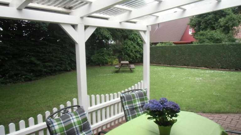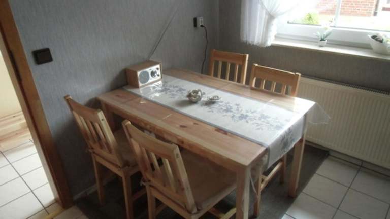 Das Ferienhaus ist im Erdgeschoss gelegen und bietet zwei Schlafzimmer. Die voll ausgestattete Küche enthält einen Kühlschrank, einen Geschirrspüler, eine Waschmaschine, einen Ofen sowie eine Mikrowelle. Handtücher und Bettwäsche werden zur Verfügung gestellt.