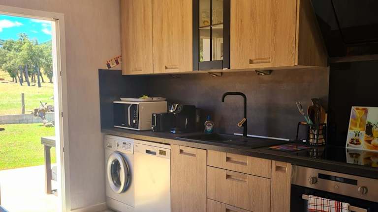 Die Unterkunft Butia bietet einen einladenden saisonalen Aussenpool, einen gepflegten Garten und eine heimelige Terrasse für entspannte Stunden. Das Ferienhaus hat einen modernen und praktischen Stil.