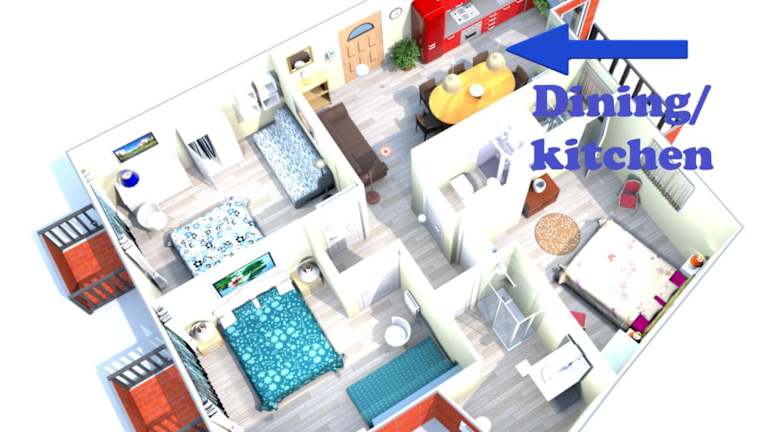 Die Ferienwohnung umfasst 3 Schlafzimmer, ein Wohnzimmer sowie eine voll ausgestattete Küche mit Kühlschrank und Kaffeemaschine. Es sind 3 Badezimmer vorhanden, ausgestattet mit Bidet und Dusche. Handtücher und Bettwäsche werden zur Verfügung gestellt. Die Unterkunft ist klimatisiert und verfügt über Nichtraucherzimmer sowie Familienzimmer.