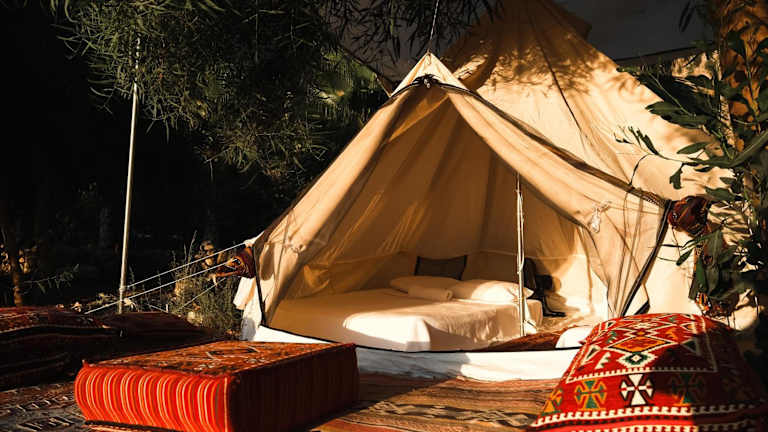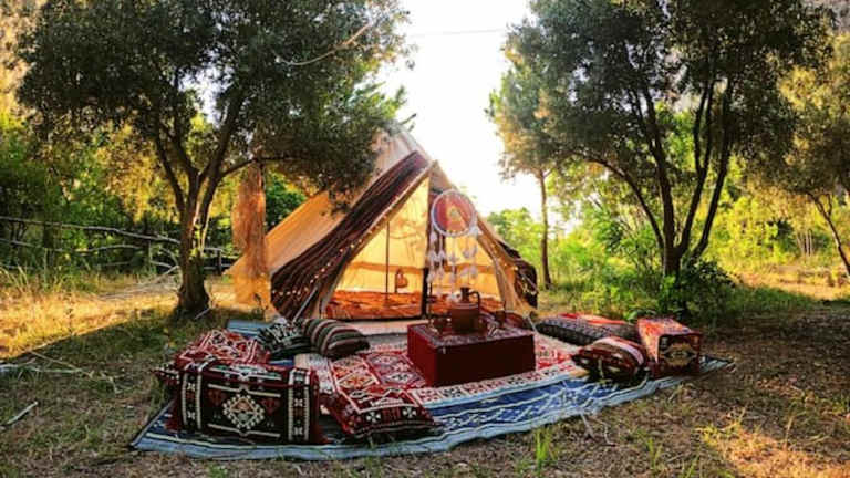Die Unterkünfte im luxuriösen Zelt sind geschmackvoll gestaltet und laden mit Gartenmöbeln zur Entspannung ein. Die Bereitstellung von Bettwäsche und Handtüchern sorgt für zusätzlichen Komfort.