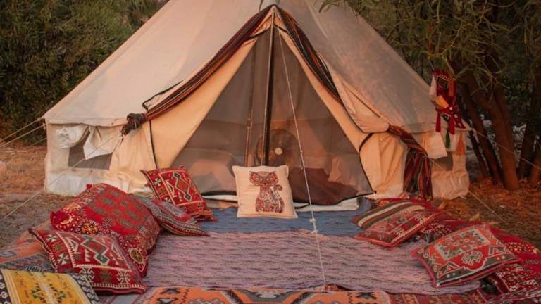 Das Butterfly Valley Beach Glamping bietet Unterkünfte am Strand mit einem eigenen Strandbereich, einem Garten und einer Terrasse. Die Unterkunft wird von einer 24-Stunden-Rezeption betreut und verfügt über einen ganztägigen Sicherheitsdienst sowie eine Gepäckaufbewahrung. Ein Kamin im Freien sorgt für eine heimelige Atmosphäre. Die luxuriösen Zelte bieten teilweise einen Blick auf die Berge und sind mit Bettwäsche und Handtüchern ausgestattet. Es stehen Gemeinschaftsbäder sowie Gartenmöbel zur Verfügung.