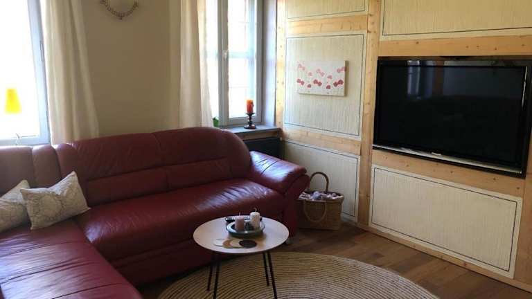 Die Ferienwohnung bietet ein Schlafzimmer, ein Wohnzimmer mit einem Satelliten Flachbild-TV und eine voll ausgestattete Küche mit Kühlschrank. Handtücher und Bettwäsche werden bereitgestellt. Die Zimmer sind schallisoliert und es stehen Babybetten für die Kleinsten zur Verfügung.