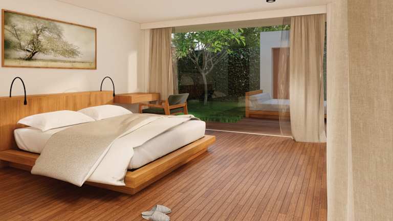 Die Zimmer bieten ein angenehmes Raumklima dank Klimaanlage und Ventilator. Sie verfügen über einen Balkon oder eine Terrasse mit Poolblick sowie ein Doppelbett oder ein Queensize-Bett. Eine Kochnische mit Kühlschrank, Herd und Tee-/Kaffeemaschine ist vorhanden. Zu den Annehmlichkeiten gehören ein Safe, eine Minibar, ein Telefon mit Direktwahl, ein TV-Gerät mit Satelliten-/Kabelempfang und WiFi. Die Badezimmer sind mit Dusche, Badewanne und Bidet ausgestattet und beinhalten Bademäntel sowie Kosmetikartikel.