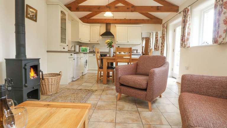 Byre bietet Übernachtungsmöglichkeiten in einem Ferienhaus, das ausgestattet ist mit einem TV, einem Sitzbereich, einem Essbereich und einer voll ausgestatteten Küche inklusive Kühlschrank, Geschirrspüler und Ofen. Ein Privatparkplatz ist vor Ort vorhanden.