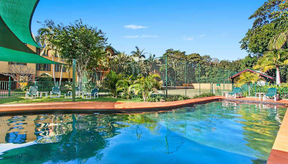 Byron Links Apartments bietet luxuriöse, geräumige Apartments mit eigenem Balkon, Grillmöglichkeiten und Blick auf das Resort oder den Golfplatz. Die Umgebung ist von prächtigen tropischen Gärten geprägt und beinhaltet einen Salzwasserpool sowie einen Tennisplatz.