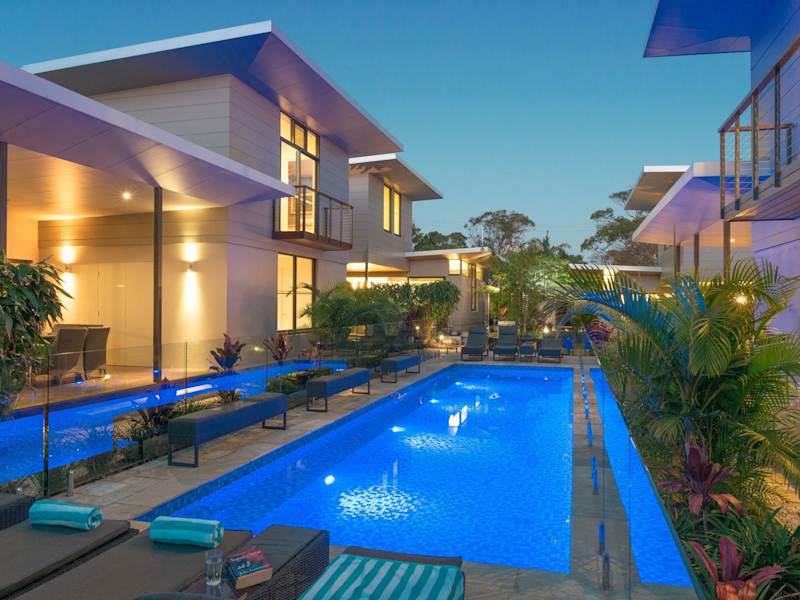 Die Byron Lux Beach Houses bieten einen tropischen Rückzugsort mit einem Aussenpool und luxuriösen Annehmlichkeiten wie einer Doppelgarage, kostenlosem WLAN, Fussbodenheizung und beheizten Handtuchhaltern. Die Unterkunft hat ein striktes Partyverbot und richtet sich nicht an Schulabgänger während der "Schoolies Week".