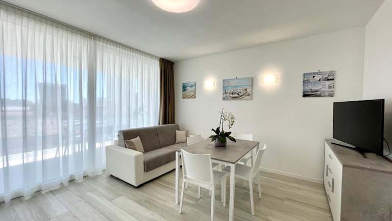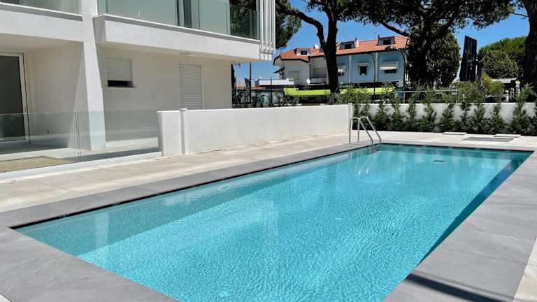 C Palace - Carraro Immobiliare Jesolo - Family Apartments bietet eine klimatisierte Ferienwohnung mit einer Terrasse und Stadtblick sowie einem saisonalen Aussenpool. Die Unterkunft eignet sich für Familien und Gruppen.