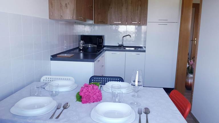 Die Ferienwohnung besteht aus einem Schlafzimmer, einem behaglichen Wohnzimmer und einer voll ausgestatteten Küche, inklusive Kühlschrank und Wasserkocher. Ein Badezimmer mit Bidet und Dusche ergänzt die Ausstattung. Handtücher und Bettwäsche werden zur Verfügung gestellt und die ganze Wohnung ist klimatisiert.