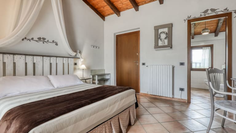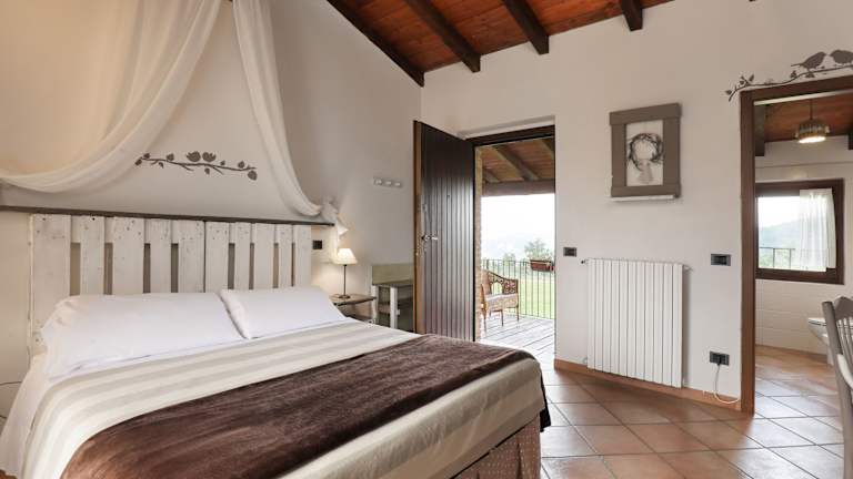 Die Zimmer im Ca' del Monte Resort sind komfortabel und gemütlich eingerichtet und bieten einen herrlichen Blick auf die Berge. Jedes Zimmer verfügt über ein eigenes, voll ausgestattetes Badezimmer mit einem Bidet und kostenfreien Pflegeprodukten. Hier können Sie sich nach einem erlebnisreichen Tag entspannen und erfrischen.