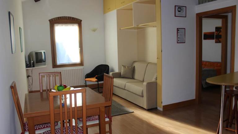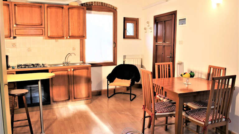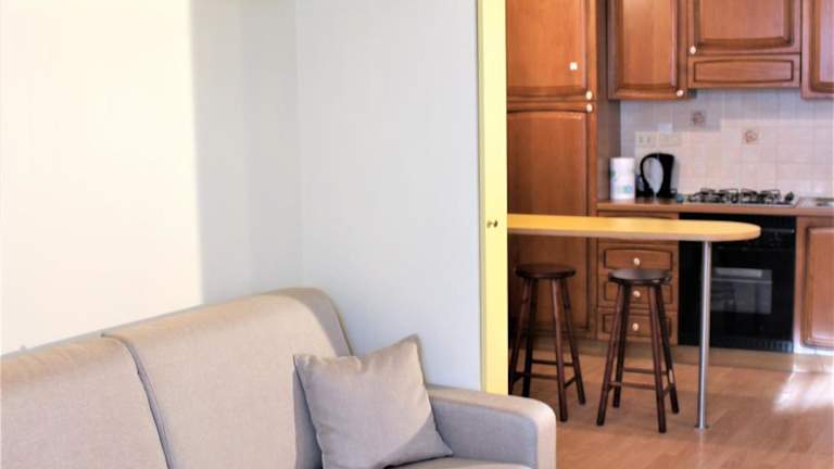 Die Ferienwohnung besteht aus einem Schlafzimmer, einem Wohnzimmer und einer voll ausgestatteten Küche inklusive Kühlschrank. Zudem verfügt sie über ein Badezimmer mit Bidet und Haartrockner. Bettwäsche und Handtücher werden bereitgestellt.