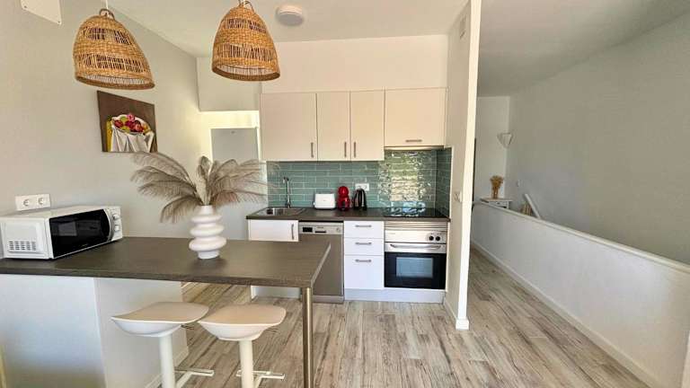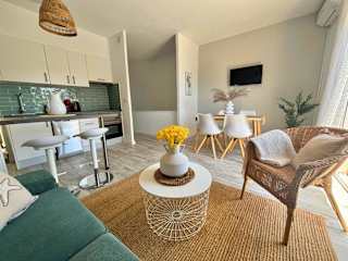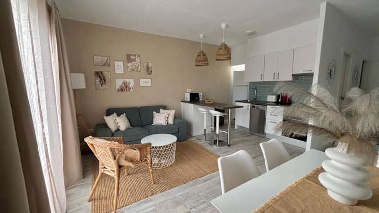 Die Ferienwohnung ist ausgestattet mit zwei Schlafzimmern, einer Küche mit Kühlschrank und Geschirrspüler, einem Badezimmer mit Dusche, kostenlosen Pflegeprodukten sowie einer Waschmaschine. Handtücher und Bettwäsche werden zur Verfügung gestellt, und es gibt einen Balkon.