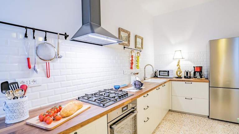Eine voll ausgestattete Küche ist vorhanden. Darüber hinaus werden Handtücher und Bettwäsche zur Verfügung gestellt.
