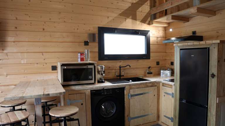 Die Ferienwohnung ist ausgestattet mit 2 Schlafzimmern, einer Küche mit Kühlschrank und Ofen sowie einem Flachbild-TV. Ein Sitzbereich und ein Badezimmer mit Dusche sind ebenfalls vorhanden.