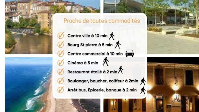 Weniger als 1 km vom Bahnhof Mont de Marsan entfernt, bietet die Unterkunft eine ruhige Lage, nur 10 km vom Golfplatz Mont-de-Marsan. In der unmittelbaren Umgebung gibt es Möglichkeiten zum Angeln und Velofahren.