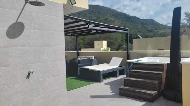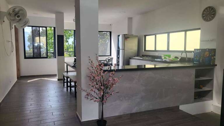 Die Cabaña en Sopetran verfügt über 4 Schlafzimmer, ein Wohnzimmer und 5 Badezimmer mit Dusche. Die gut ausgestattete Küche beinhaltet einen Kühlschrank und eine Mikrowelle. Die Unterkunft bietet zudem einen Flachbild-TV und eine Terrasse.
