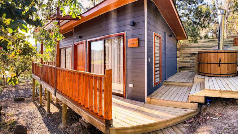 Die Unterkunft Cabañas Boutique Faldeos de La Lajuela befindet sich in der Region O'Higgins in Santa Cruz, umgeben von malerischen Berglandschaften.