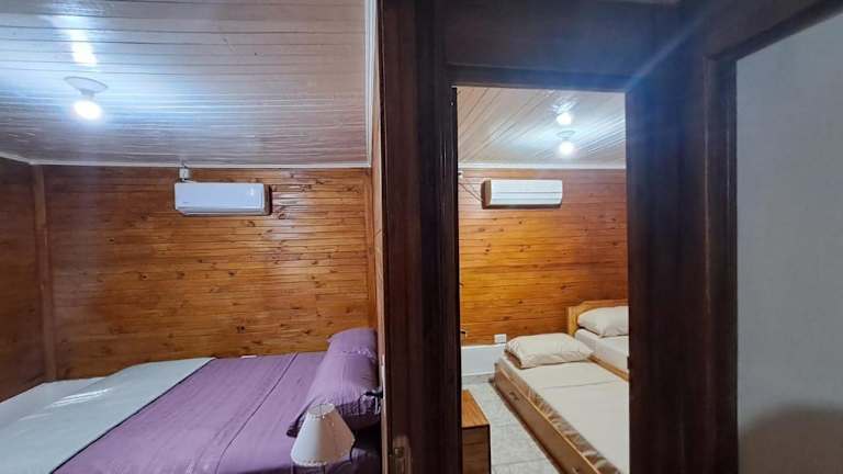 Das Ferienhaus besteht aus zwei Schlafzimmern, einem Wohnzimmer und einer voll ausgestatteten Küche mit Kühlschrank. Es verfügt über zwei Badezimmer mit Badewanne oder Dusche und kostenlosen Pflegeprodukten. Für zusätzlichen Komfort können Handtücher und Bettwäsche gegen Aufpreis bereitgestellt werden.