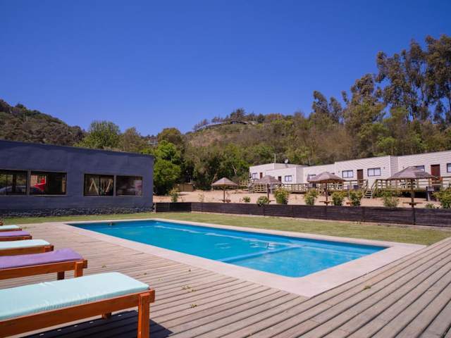 Cabañas laguna de zapallar maitencillo bietet einheimischen Charme in Form von gemütlichen Cabañas mit einer einladenden Terrasse und einem saisonalen Aussenpool. Die Unterkunft ist für Familien geeignet und bietet Bequemlichkeiten wie Privatparkiermöglichkeiten, wobei Haustiere auf Anfrage erlaubt sind. Die Räume sind Nichtraucherzimmer, und es wird um eine ruhige Atmosphäre ohne Partys gebeten.