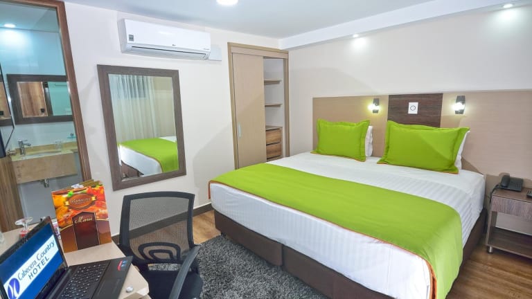 Die klimatisierten Zimmer im Cabecera Country Hotel sind mit Holzmöbeln und farbenfrohen Gemälden dekoriert. Jedes Zimmer verfügt über ein Doppel-, Queensize- oder Kingsize-Bett sowie eine Minibar, einen Safe, einen Schreibtisch und einen modernen Flachbild-Plasma-TV. In den Badezimmern gibt es sowohl eine Dusche als auch eine Badewanne, einen Haartrockner und kostenlose Pflegeprodukte. Auch rollstuhlgerechte Zimmer mit barrierefreiem Bad sind vorhanden.