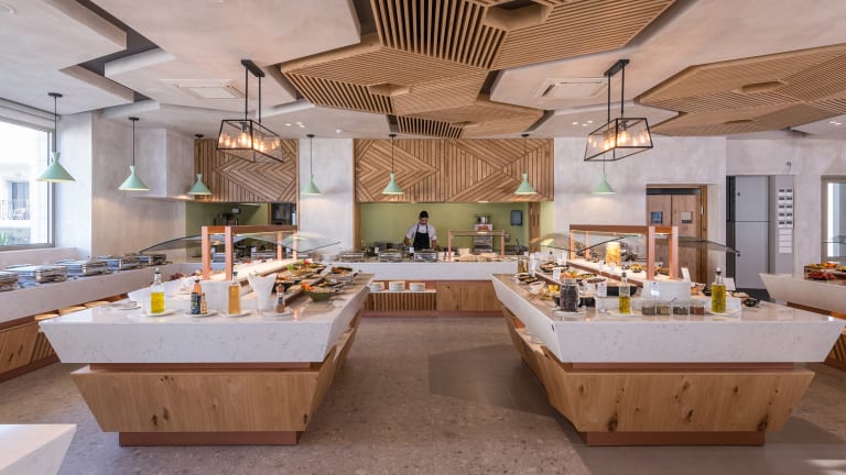 All Inclusive, alle Mahlzeiten in Buffetform. Frühstück (7-10 Uhr), Langschläferfrühstück (10-11 Uhr im Poolbar Bereich), Mittag- (12:30-14 Uhr), sowie Abendessen (18:30-21 Uhr) werden in Buffetform serviert. An der Poolbar erhalten Sie von 10-17 Uhr verschiedene Snacks und Eis. Die Beachbar versorgt sie von 10-17 Uhr mit verschiedenen nationalen (All In) und auf Wunsch mit internationalen Getränken (gegen Bezahlung), sowie mit Gyros und anderen nationalen Spezialitäten von 12.30-14.00 Uhr (im All inclusive inbegriffen). Alkoholische sowie alkoholfreie Getränke erhalten Sie von 10-24 Uhr im Barbereich.