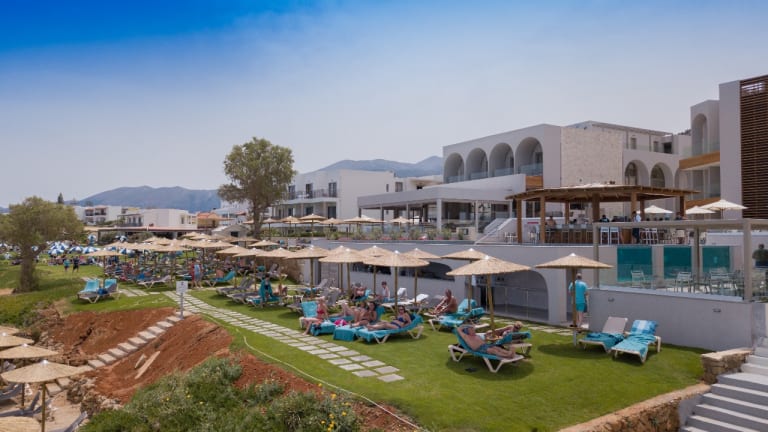 Das Cactus Mare bietet als Adult Only Hotel ein ganz besonderes Ambiente mit dem für Cactus gewohnt, zuvorkommenden Service und hochwertigen Unterbringungen. Frisches Weiß, helles Holz und Steinelemente, verleihen der modernen Anlage Ihren luxuriösen Charme. Mit nur 90 Zimmern im Haupthaus und 30 Zimmern im Annex Bereich, verspricht das Hotel Ruhe und Erholung pur. Der Annex Bereich wird durch eine kleine Straße vom Hauptareal getrennt. Dort befinden sich die Zimmer mit Sharingpool, Loft Zimmer, aber auch Doppelzimmer. Im Annex Bereich gibt es einen Pool mit Poolbar und die 2 a la carte Restaurants. Es erwartet Sie eine 24-Stunden Rezeption, Lobby, Gepäckraum, 1 Hauptrestaurant und 2 a la carte Restaurants (1 Mal pro Woche in jedem a la carte im All In inbegriffen, Vorreservierung erforderlich), sowie ein kleiner Fitnessraum und ein Wellnessbereich. Das große, top ausgestattete Fitnesscenter vom fast gegenüberliegenden Schwesterhotel Cactus Royal, sowie das Dampfbad, Sauna und der Innenpool (nicht beheitzt) können kostenlos mitbenutzt werden. Wi-Fi ist in der gesamten Anlage inklusive. Die Außenanlage erstreckt sich Terrassenförmig zum Meer hin, so dass fast von jeder Liege ein herrlicher Meerblick garantiert ist. Zudem sorgt ein Infinitypool mit Poolbar für Erfrischungen, am Strand versorgt Sie die Beachbar mit Getränken und von 12.30-14.00 Uhr mit Gyros und noch einigen lokalen Spezialitäten (im All Inclusive inbegriffen) . Liegen und Schirme sind am Pool und am Strand, je nach Verfügbarkeit, inklusive. Strandtücher erhalten Sie kostenlos vom Spa Bereich. Der All In gilt bis zum Moment der Abreise vom Hotel. Parkplätze am Hotel sind, je nach Verfügbarkeit, kostenfrei. Wassersport wird im nebenliegenden Sandstrand von privaten Anbietern gegen Bezahlung angeboten. Ein Reitstall befindet sich ebenfalls in naher Umgebung (Privatanbieter). Cactus Mare liegt zwischen Agios Nikolaos und der Hauptstadt Heraklion und ermöglicht den Gästen den Besuch vieler touristischer Sehens-würdigkeiten der Region. Das Touristenzentrum von Chersonissos liegt 5 Fahrminuten vom Strandhotel entfernt und den Flughafen Nikos Kazantzakis erreichen Sie nach 35 km.