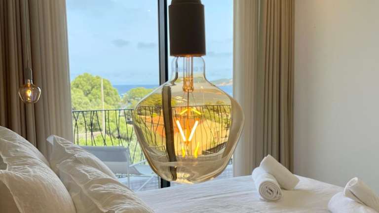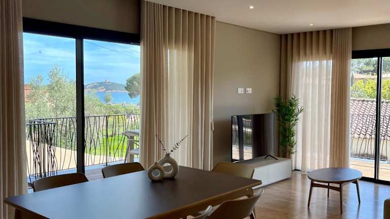 Die klimatisierten Zimmer sind mit Parkettböden ausgestattet und bieten ein eigenes Badezimmer. Zu den Annehmlichkeiten zählen ein Flachbild-TV, ein Kleiderschrank, eine ausgestattete Küche mit Kühlschrank, Ofen, Mikrowelle, Kaffeemaschine und Wasserkocher sowie eine Terrasse mit Meerblick.