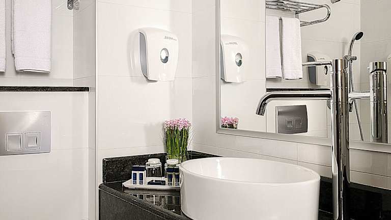 Die Zimmer sind geräumig, modern und elegant gestaltet, viele davon bieten einen Balkon oder eine Terrasse mit Meerblick. Sie sind mit Teppichböden, Klimaanlage, Heizung, Safe, Minibar und Schreibtisch ausgestattet. Zur technischen Ausstattung gehören ein Telefon, ein TV-Gerät und Wifi (ohne Gebühr). Die Badezimmer verfügen über eine Dusche und eine Badewanne sowie über Haartrockner und Kosmetikartikel. Es gibt auch rollstuhlgerechte Zimmer sowie Familien- und Nichtraucherzimmer.