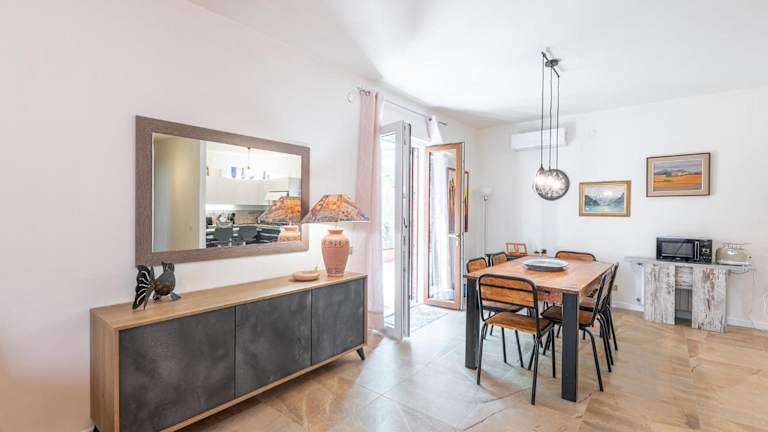 Die Ferienwohnung umfasst 4 Schlafzimmer und ein gemütliches Wohnzimmer. Sie beinhaltet eine voll ausgestattete Küche mit Kühlschrank und Kaffeemaschine sowie 2 Badezimmer mit Bidet und Dusche. Handtücher und Bettwäsche werden zur Verfügung gestellt, und die Ausstattung bietet Bequemlichkeit für einen angenehmen Aufenthalt.
